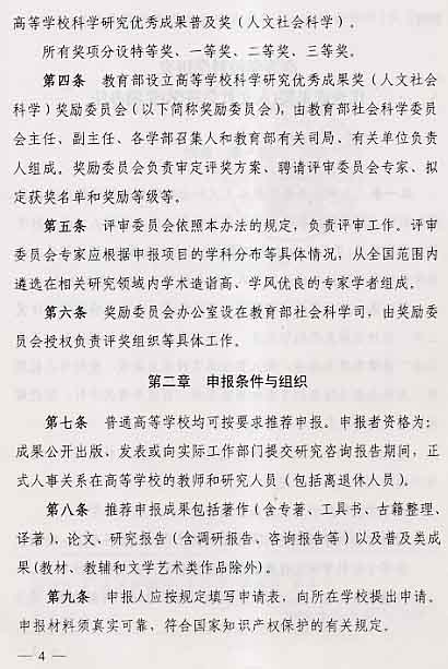 教育部《高等学校科学研究优秀成果奖(人文社会科学)奖励办法》