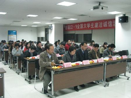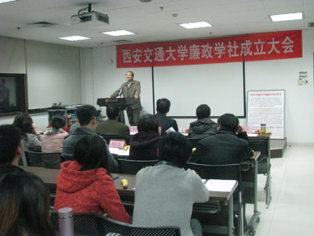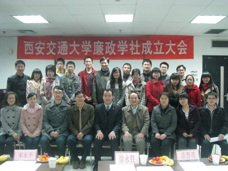 2011年11月24日晚7时,在教学主楼E703会议室内宾朋满堂,老师和同学们一起见证了西安交通大学廉政学社的成立。