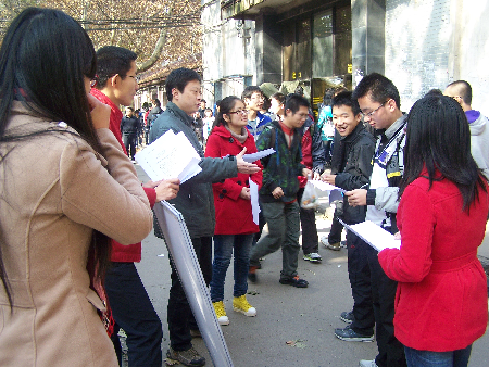 系列活动之三:在校开展全国大学生廉洁志愿者招募以及学社成员纳新活动。