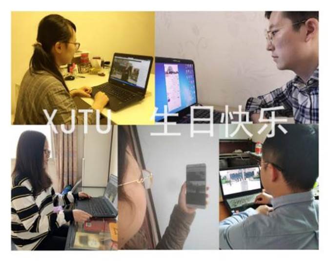 硕9106、9107支部孔芸、蒋金桂在云升旗国歌声响起时,便回忆起刚入校在涵英楼前升旗时清晨的阳光,袅袅的薄雾,和那庄重的做西迁精神传人的誓言,那是青春和使命的味道。六十四年前,交大和交大前辈们一起从黄浦江边来到了三秦大地,扎根祖国西部;六十四年后,面对突如其来的新冠疫情,交大人再一次挺身而出,奋斗在一线。交大人用行动证明了国家需要时交大人从不缺席的事实,彰显了交大的家国情怀、使命与担当,践行了每一个交大人牢记于心的西迁精神。从来都为自己是交大人而感到自豪,努力在这个最爱的学校寻找到最好的自己。疫情并不阻隔交大学子与母校的联系,想对交大说一声,“生日快乐”。