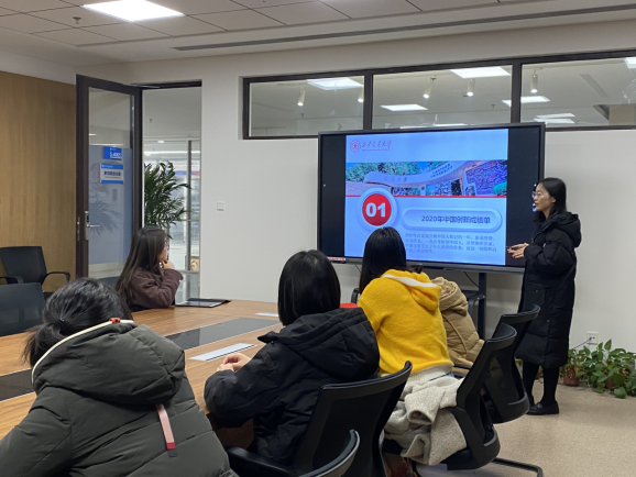 邓倩倩带领大家回顾了2018年以来,习近平总书记有关自主创新的一系列讲话精神。她强调,我国必须坚定不移走自主创新道路,坚定信心、埋头苦干,突破关键核心技术,努力在关键领域实现自主可控,保障产业链供应链安全,增强我国科技应对国际风险挑战的能力。我们作为研究生,也应该紧跟国家发展步伐,在自己的领域努力研究,不懈奋斗,做出自己的新贡献。