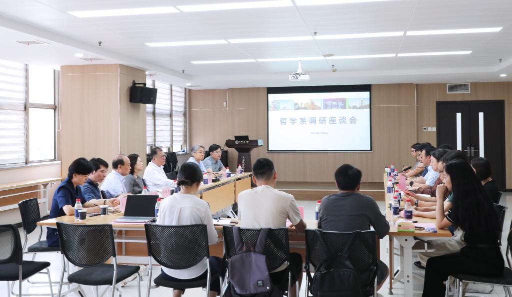 哲学系主任、副教授王嘉新围绕学科现状、育人成效、未来展望等方面汇报哲学系发展情况。教师代表就学科建设、学科交叉融合、人才队伍建设、科研创新等方面进行了深入探讨。大家一致表示,将把哲学研究成果更好地转化为强大的生产力,促进哲学与科技、经济、文化的有机结合,为解决现实问题提供思想支撑和理论指导,为强国建设、民族复兴伟业贡献交大力量。