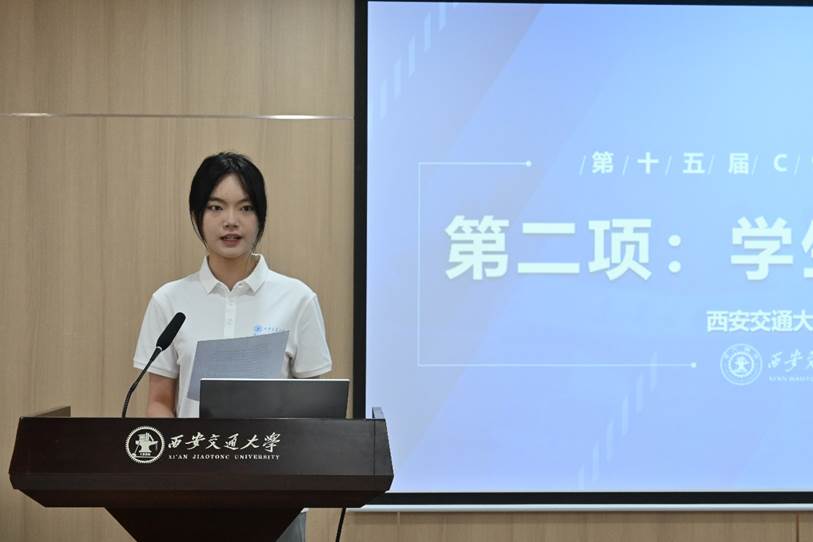 西安交通大学宣萱同学作为暑期学校学生代表发言,她表示,欢迎大家踏入文化底蕴深厚的古都西安,在这里我们将亲身领略到这座城市的独特魅力。暑期学校的课程和活动将围绕中国传统文化的各个方面展开,我们会深入学习古文经典的智慧和书法绘画的韵味。她期待与来自不同高校、不同专业的各位同学进行学术交流和思想碰撞,在为期十天的暑期学校中携手共进,共同探索中国传统文化的奥秘。
