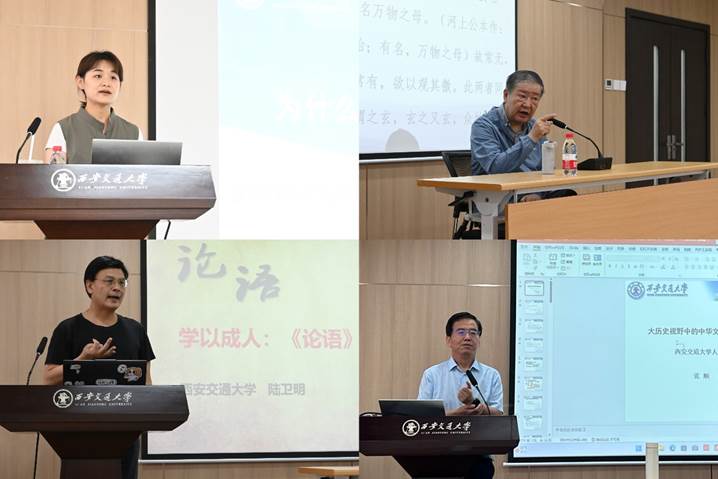 本次暑期学校共安排八场专题讲座。同学们跟随李慧老师,从地铁装饰壁画出发,品味丝绸之路沿线国家亘古灿烂的文化与历史,感受今天一带一路深厚的文化背景与兼容并蓄的精神。在韩鹏杰教授的课堂上,走进《道德经》,品读一本书、品味两个字、学习三件宝,沉入一场对道家智慧的深度解读及思考。在全国高校思政课名师工作室(西安交通大学)负责人,国家重大课题“中华优秀传统文化与科学社会主义价值观主张高度契合性”首席专家陆卫明教授的带领下,同学们从《论语》经典出发,解读君子、中行、独立之理想人格,智、仁、勇三达德,内圣外王、达兼穷独的理想等人生智慧,探究学为君子、学以成人的儒家宗旨。张顺教授的《历史视域下的中国文化与中华民族共同体》从历史维度与全球视野出发,引导同学们深入了解中华文化的发展演进的四个历史阶段,揭示了中华文化对中华民族共同体型塑过程及其内在共生性。在曹耿献副教授团队的音乐课堂上,同学们从中国特色交响音乐中感悟创新思维,解读陕西的延安精神、梦桃精神、西迁精神,在现场欣赏陕西省戏曲研究院秦腔名家段红老师饱含激情、声情并茂的精彩秦腔唱段,跟随李东鹤副教授思辨人工智能与秦腔艺术的结合。