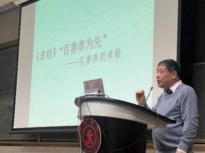 道德情境在于“求善”。许结教授首先从《孝经》出发,提出中国经典文本重“孝”的道德观念。《论语》中孔子对“孝”的解释为:“今之孝者是谓能养,至于犬马皆能有养,不敬,何以别乎?”体现出传统道德精神从“孝养”至于“孝敬”的更高境界。许结教授强调,在法治约制之外,西方传统文化精神以宗教约制为主,中国传统文化精神以道德约制为主。在平衡宗教约制和道德约制之中,中国提出了“以道德代宗教”之说。道德约制的至高境界即“止于至善”,求善的心灵构建方式即是《礼记·大学》提出的“修齐治平”。因此,读经典应该把握住道德情境,带有“求善”和“敬”的态度,怀着敬畏之心和敬爱之心对待自身的学业、事业,乃至国家和全人类。