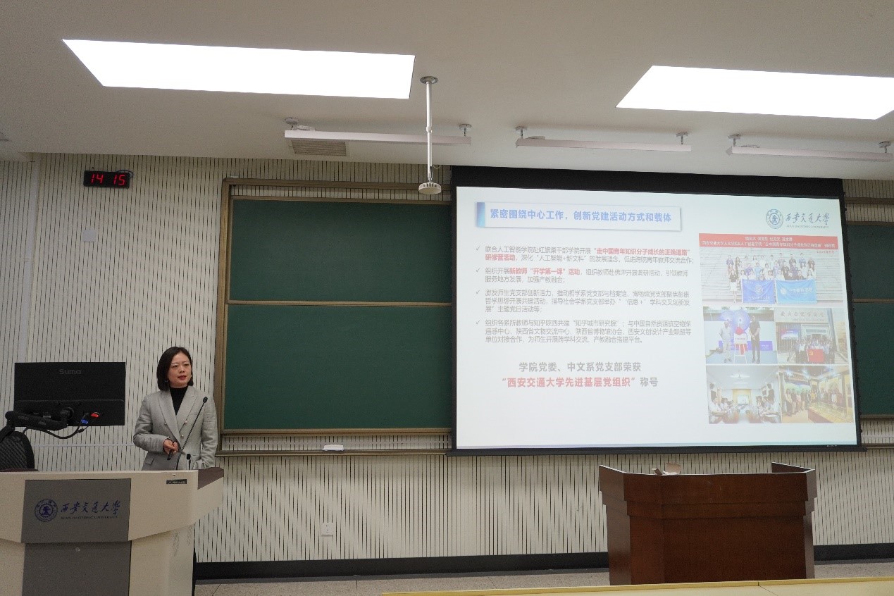 纪梦然代表学院党委班子和个人,以“紧密围绕中心工作,以高质量党建引领和保障高质量发展”为题,系统总结了学院党委2024年各项工作开展情况,并作个人述职述廉。学院党委围绕中心、服务大局,及时学习贯彻落实中央精神和学校党委决策部署,扎实开展党纪学习教育,在学院营造了改革奋进、风清气正的良好氛围。学院通过举办建院三十周年院庆系列学术、文化活动,凝聚师生和校友力量,共话学院发展。学院紧紧抓住人才队伍建设和基层党建工作,引培用并举,高层次人才队伍建设取得突破。通过开展“走中国青年知识分子成长的正确道路”研修营活动、新教师“开学第一课”活动、提升“政治三力”系列活动、“人文艺旅”美育+思政系列活动等,创新师生思想政治教育新形式,全年开展师生党建活动160余次,引领师生开展跨学科交流、推动产教融合工作。学院党委荣获“西安交通大学先进基层党组织”称号,yl6809永利官网分会荣获“陕西省教科文卫体系统模范职工小家”称号,yl6809永利官网团委荣获“社会实践特色团委”称号。学院扎实落实中央精神和国家战略,抓住筹建丝绸之路历史文化研究院、开展铸牢中华民族共同体意识和社会工作研究、助力文化建设三大机遇,发挥学科优势,开展有组织的科研工作。2024年成立省级研究基地“陕西省社会工作研究院”,学院获得西安市2024年度文创赋能单位称号。学院通过探索积累,在思想引领、支部共建、队伍建设和意识形态工作方面形成有效机制,有力保障2024年在人才培养、科学研究和队伍建设等方面都取得了新的突破。