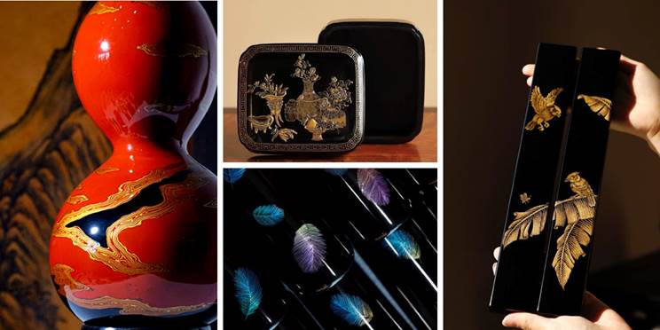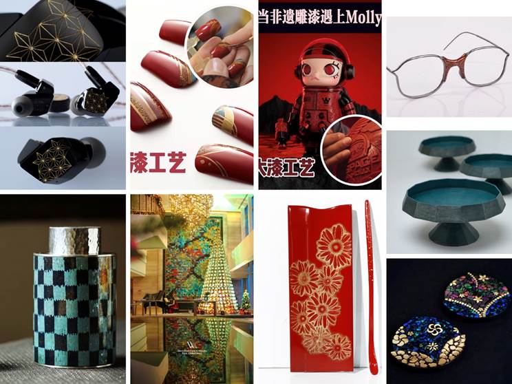 讲座伊始,袁端娇展示了秦岭深山采漆、古法制漆的场景,她以“8000年漆器文明”为脉络,阐释大漆防腐耐磨、天然环保的特性,并结合兵马俑彩绘、脱胎佛像等案例,展现了漆艺在中华文明中的璀璨印记。谈及创业历程,她坦言从交大毕业后回乡投身冷门非遗时曾饱受质疑,“母校赋予的思维格局让我坚信:传统不是束缚,而是创新的源泉”。十年间,她带领团队攻克生漆过敏、工艺复杂等难题,将传统技法与现代美学巧妙融合,开发出符合现代审美的日用漆器、大漆装置艺术、美甲漆等广受市场喜爱的产品,还联合毛戈平、泡泡玛特、华尔道夫、DITA Audio等品牌开发出大漆螺钿饰品、大漆Molly、大漆耳机等跨界产品,与西安交通大学联合研发的MAGIC FIT 020 模块化智能眼镜,凭借“大漆 ×3D 打印”跨界创新,荣获 2025 年德国 IF 设计大奖。 “大漆是祖先留给我们的未来材料,它不应被锁在博物馆,而应融入当代人的日常。” 袁端姣为为漆艺破圈之路写下生动注脚。