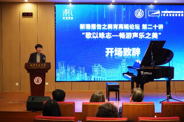 西安交通大学党委副书记王欢宣布美育多功能报告厅正式启用。在致辞中,王欢谈到,美育是教育的灵魂,在现代社会重要性日益彰显,我校已经实现了体美劳教育全覆盖,我们应该努力打造具有交大特色的美育平台。同时向所有为我校美育建设做出贡献的单位致以敬意,在大家的共同努力下,我校美育教育必将取得更大成绩。王欢对于赵登营教授的莅临表示衷心感谢。