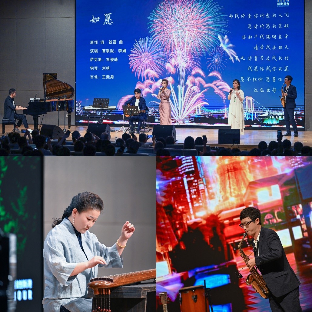 音乐教育中心青年教师刘俊峰的萨克斯独奏《午夜萨克斯》、王斐尧独唱的音乐剧选曲《心脏》、曹耿献和李娟的合唱《如愿》、梁睿的古琴独奏《流水》等曲目展现了流行、经典、抒情、灵动等不同的音乐风格,让现场观众耳目一新,感受到了乐器与声乐的艺术魅力,油然而生对生活与未来的美好憧憬。
