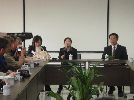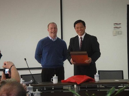 David Burgess 教授和边燕杰教授代表两校互赠了礼物,将两校的友谊向前推进了一大步,为双方的进一步合作奠定了基础。最后,边院长邀请客人参观我校校史博物馆及春意盎然的交大校园,座谈会在友好的欢笑声中结束。