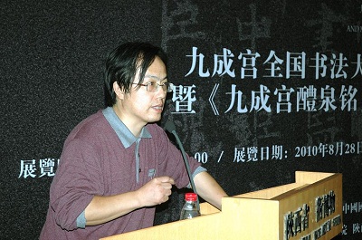 由文化部直属的、国内进行艺术创作和研究的最高机构中国国家画院主办,中国国家画院书法创作研究院、沈鹏书法艺术基金,陕西省麟游县委县政府承办的“九成宫全国书法大赛、全国书法名家学术邀请展暨《九成宫醴泉铭》与欧阳询楷书艺术学术论坛”系列活动于8月28日在陕西省美术博物馆隆重开幕。文化部、陕西省、中国国家画院及麟游县的有关领导,全国众多著名书法家、书法理论家以及本次活动的部分获奖作者共千余人参加了开幕式。我院中国书法系杨锁强副教授被邀担任了“九成宫全国书法大赛”的评委。并作为全国特邀的11位学术专家之一在楷书论坛上做了题为“溯源异流——关于当代楷书发展出路的若干思考”的学术专题报告。此论文被收入到“中国国家画院中国书法创作研究院书法学术丛书”之一的《欧阳询及九成宫醴泉铭研究文集》中,已由荣宝斋出版社2010年8月正式出版发行。