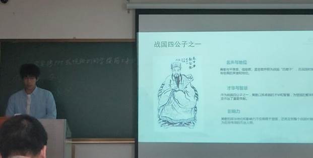 “想得高分组”围绕战国四公子之一的黄歇进行了PPT讲演展示。讲明了春申君黄歇在年轻时智勇双全,协助楚考烈王熊完逃回出国,随即封侯拜相、位居人臣,然而却受不了利益的诱惑,采用李园所献移花接木之计,最终却落得生死族灭的下场。这个故事警示我们要能够守住底线,经得起利益的诱惑,保持自身的德行操守,以史为镜,以明得失。