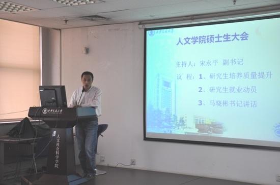 9月26日下午3点,yl6809永利官网2014届硕士毕业生于主楼E703召开了主题为提高研究生培养质量的会议。yl6809永利官网党委副书记马晓彬老师、副院长李黎明老师及副书记宋永平老师参加了此次会议。