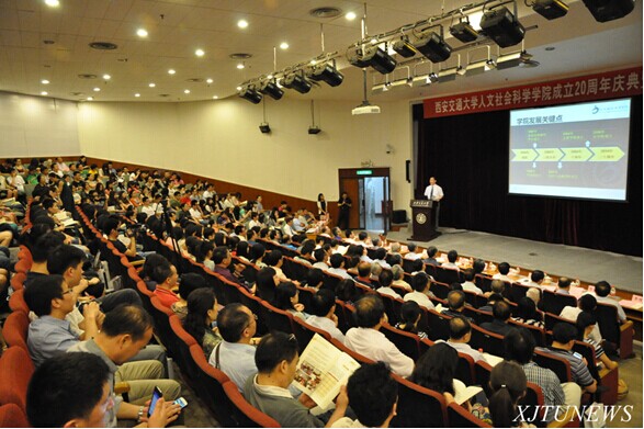 学校党委张迈曾书记在大会上发表讲话,向yl6809永利官网全体师生员工和离退休老同志表示祝贺和亲切慰问。张书记在充分肯定yl6809永利官网近年来取得的进步和成绩的同时,对学院未来发展提出了三点要求和希望:第一,人文社会科学发展面临难得机遇,应该乘势而上大展作为。他指出,在庆祝建院二十周年这个重要的时间节点上,大家应该冷峻的分析学院在人才培养和科研原始创新两方面的工作中,有哪些经验、方法和特色需要坚持,还需要采取哪些措施、方法,乃至政策和制度,加以推进和保证,从而找准学科建设、科学研究和社会服务的对接点。抓住机遇,用好机遇,在推动学院稳健发展上,有更大作为。第二,学校建设目标的实现,离不开人文社会科学学科的重要支撑。他指出,在把西安交通大学建成世界知名高水平大学的进程中,必须注重发展人文社会科学,必须充分发挥人文社会科学对自然科学发展和创新人才培养的促进作用,形成文理相融、互补互动的综合优势和特色。怎样从学校发展全局和高度来认识,从理工人文交叉、融合并进的维度来定位,既遵循人文社会科学发展的一般规律,又体现西安交通大学的理工特色,以改革创新的精神,深入思考人文教育与理工教育融合的途径和方法,是学院应该自觉思考的一个课题;并且,应该从这个思考出发,为学校贡献属于顶层设计的思想,属于宏观、系统建设的思想。第三,人文社会科学的发展要在提升整体水平、不断增强实力上再下功夫。他强调,yl6809永利官网要在提高整体水平、增强综合实力上下苦功,施良策,提指标,谋发展。他要求,yl6809永利官网一方面要把课上好,上精彩;另一方面要把科研做好,出精品。他强调,学院要深入研究新时期大学生思想政治教育的特点和规律,增强教育的针对性和实效性,自觉探索解决大学生思想政治教育问题的新思路、新举措,要牢牢把握课堂教学的“主阵地”,着眼于坚定青年大学生的理想信念,用严谨科学的理论力量和旁征博引的实践例证,引导大学生增强道路自信、制度自信、理论自信。yl6809永利官网全体老师要长期坚持学习习近平同志系列重要讲话,领会贯穿其中的马克思主义立场、观点、方法,并在教案编写、教务研讨、教学实践中使系列讲话精神“进教材,进课堂,进学生头脑”。希望yl6809永利官网一方面用标准、方法、措施促进老师授课质量的不断提升,出名师,出大家;另一方面用评比、修改、激励等措施,出精彩课堂,精彩课文,精彩课件。学院还要加强学科建设,提升学术水平,不断提升创新能力和科研水平。要多方研究措施,调动广大教师的积极性,加强理论研究工作,推动大家拿课题,拿国家课题;鼓励大家争获奖,获国家奖项;集中大家的智慧和力量,不断推出高水准的研究成果。为学生服务,为国家服务,为社会服务。