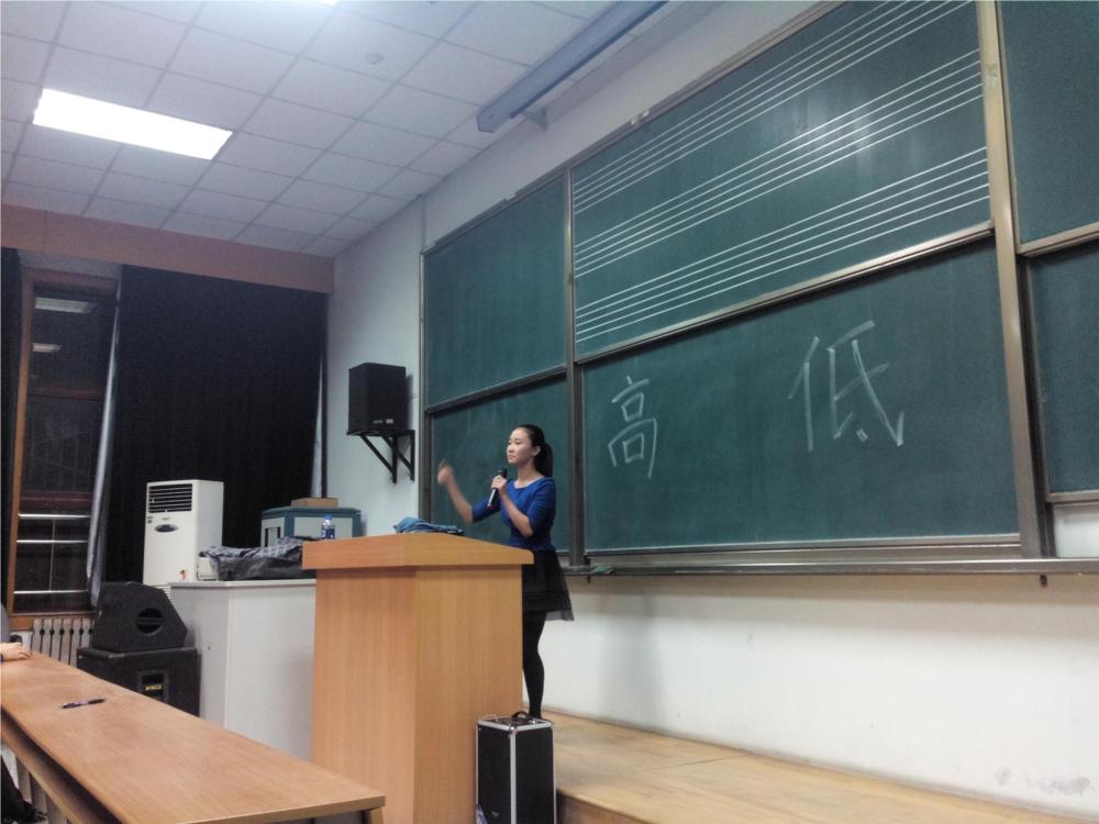 还记得大家第一次和航天学院的同学们会合,很多同学都没有听过校歌,当时的练习并不理想,像孩子牙牙学语般一句一句练习,还有很多男生对《茉莉花》所要求的柔美体会不到也表现不出来,场面既尴尬又好笑,有时甚至练一次就只学会了几句歌词,大家都有点着急。指挥老师是一个善于控制场面的活泼女生,她发现了大家的问题就想尽办法逗大家笑,尽力使我们练习的过程变得有趣起来。