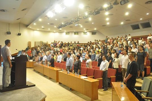 在奏唱校歌声中,yl6809永利官网2015级新生入学教育大会圆满结束。