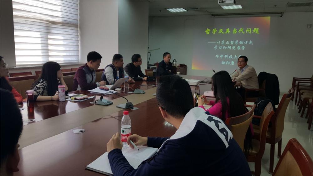yl6809永利官网为迎接学校120周年校庆,组织了系列名家学术讲座活动。2016年3月30日,受到yl6809永利官网哲学系邬焜教授的邀请,国务院学位委员会马克思主义理论学科评议组成员、国家哲学社会科学规划办通讯评委、国务院学位委员会马克思主义学科特约评委、教育部人文社会科学规划哲学学科组成员、全国高校哲学教学指导委员会副主任、华中科技大学教授、博士生导师欧阳康教授来我校进行学术交流,受到我校师生的热烈欢迎。