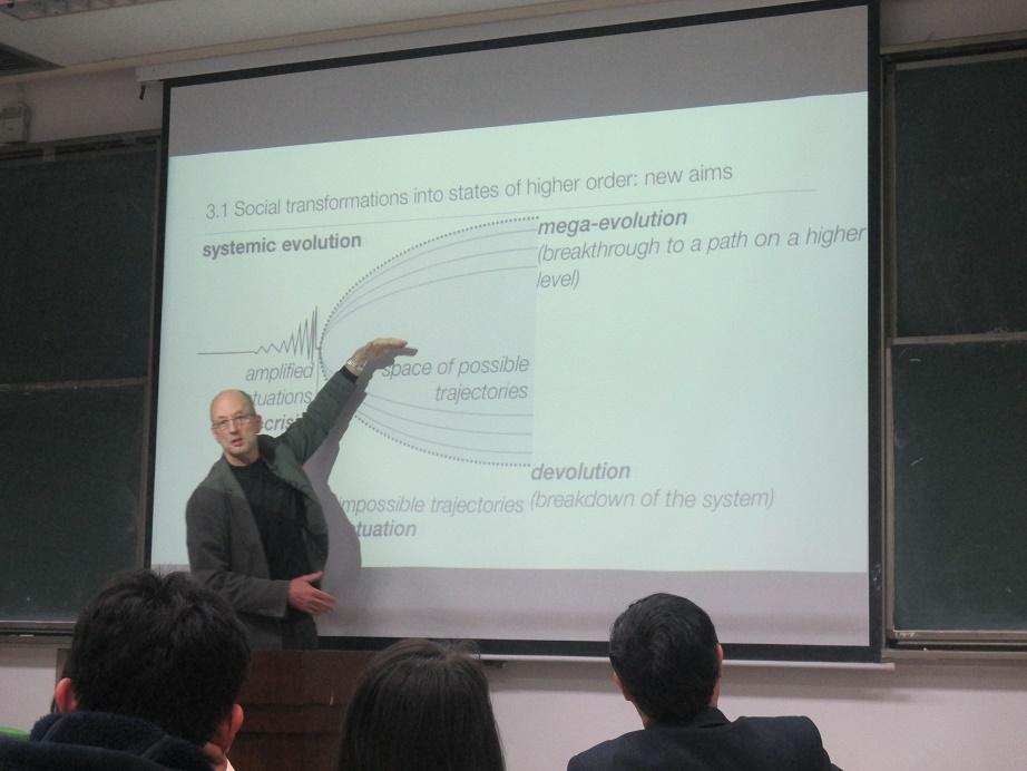 2016年4月5日至6日,欧洲系统科学和控制论研究院院士,国际系统科学和信息科学研究领域的顶尖学者,维也纳贝塔朗菲系统科学研究中心主席,维也纳统一信息论研究组(信息科学促进协会)主席,华盛顿信息科学学会、科学顾问委员会、指导委员会主席,维也纳技术大学设计和技术评估学院信息学系,技术评估教授(终身教职)Wolfgang Hofkirchner院士受yl6809永利官网哲学系、国际信息哲学研究中心邬焜教授邀请,在我校创源论坛和学而讲坛分别举办了两场面向全校师生的学术讲座,并与哲学系的老师、学生就 “统一信息理论”与信息哲学相关问题进行了一场讨论深入的座谈。