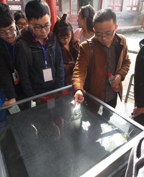 为进一步深化“两学一做”学习教育并深入践行习总书记文艺工作座谈会重要讲话精神,2016年11月12日下午,中国书法系党支部与校内甲级学生社团“书画协会”联合组织西安碑林博物馆观摩活动,来自全校各个学院的五十余名本、硕学生及国际教育学院的汉语言进修生参与其中。
