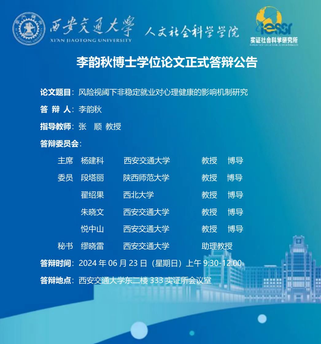 李韵秋博士学位论文正式答辩公告