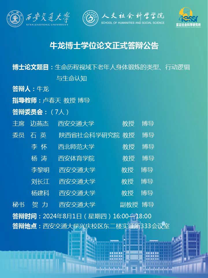 牛龙博士学位论文正式答辩公告