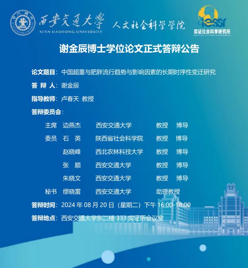 谢金辰博士学位论文正式答辩公告