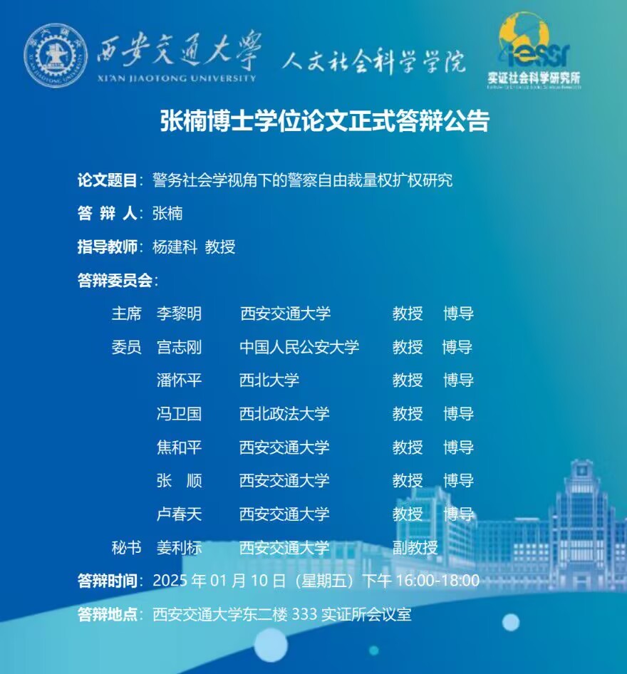 张楠博士学位论文正式答辩公告