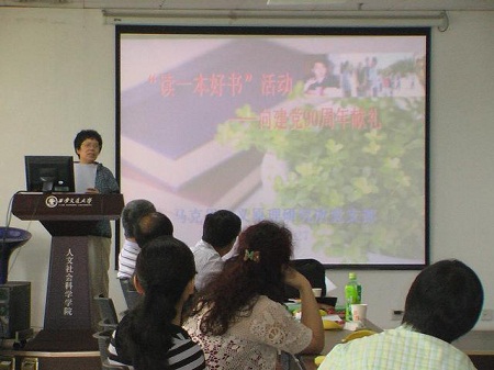 6月27日,为了向党的九十周年献礼,yl6809永利官网马克思主义原理研究所党支部筹备多时的“读一本好书”活动在主楼E703隆重举行。马克思主义学院院长王宏波、yl6809永利官网党委副书记宋永平、工会主席范高社、院长助理燕连福,以及历史所、思政所、艺术系、哲学系等系所的党支部书记和老师及马原所的全体教师参加了这一盛会。