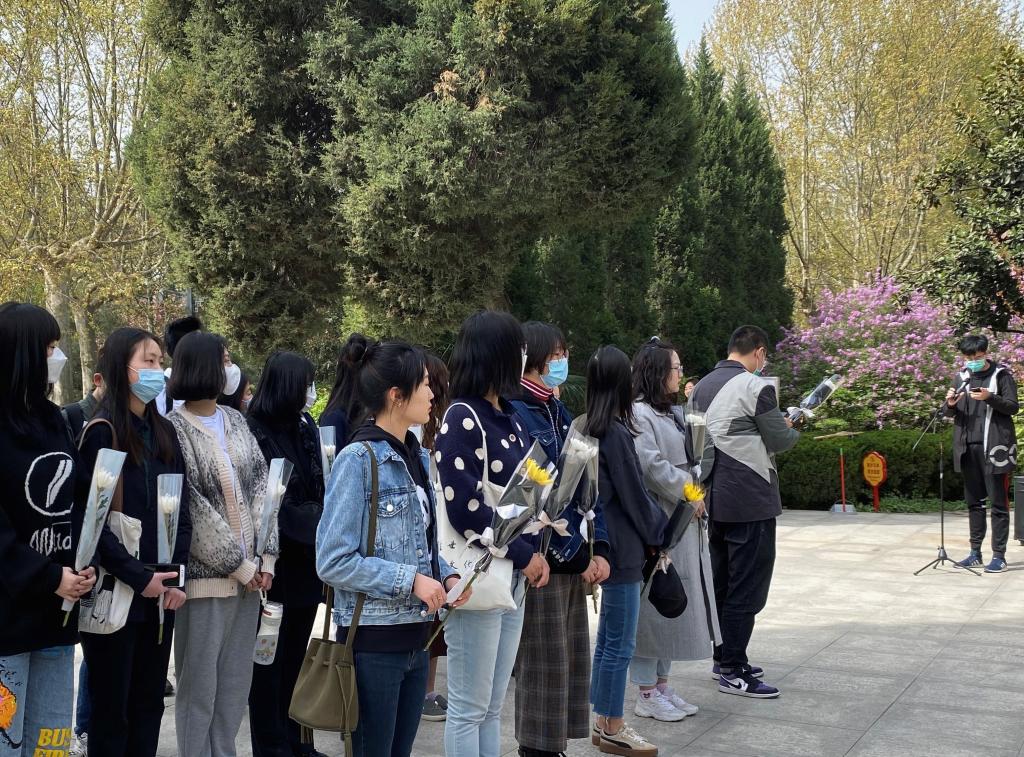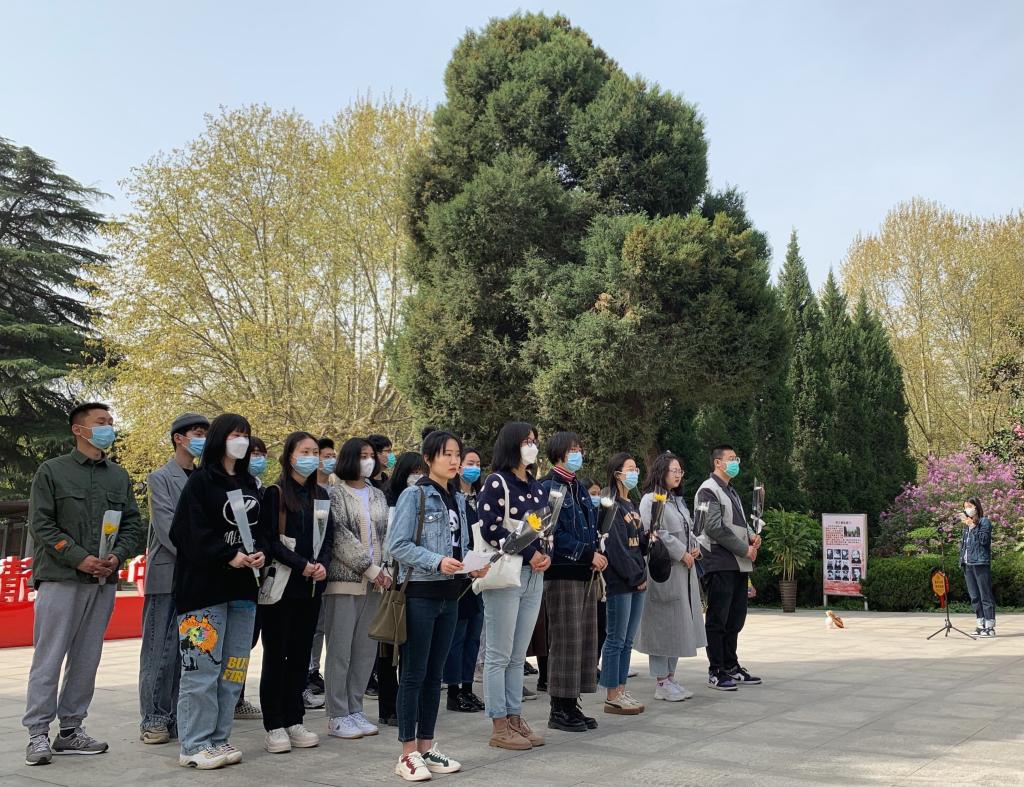 党支部书记邹铭聪向大家介绍了西安烈士陵园的基本情况,说明了此次活动的主要目的和意义。她谈到,2021年是中国共产党百年华诞,无数共产党人曾经的奋斗身影还历历在目,扫墓祭祖,缅怀先烈,是中华民族的传统习俗。我们作为新一代青年要继承先辈遗志,传承红色基因,弘扬爱国主义精神。