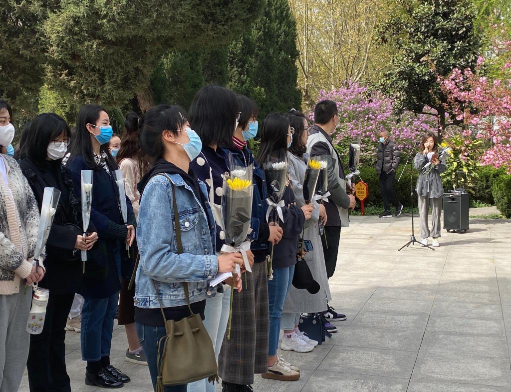 党员代表高丝雨和入党积极分子代表高展、粟超就本次活动进行了发言。高丝雨说到,我们要时时回望历史,以此激励与警示我们,要珍惜革命烈士用鲜血和生命换来的今天。高展提到,看到刻于碑石上的“革命英雄永垂不朽”八个字,不禁肃然起敬,也感悟到了先烈们把对国家、对大众的爱化作了战斗中同敌人拼杀的勇往直前的精神力量。粟超向同学们发出了倡议,提倡大家牢记使命,勇于实践,努力成长为有理想、有道德、有文化、有纪律的社会主义新时代研究生。