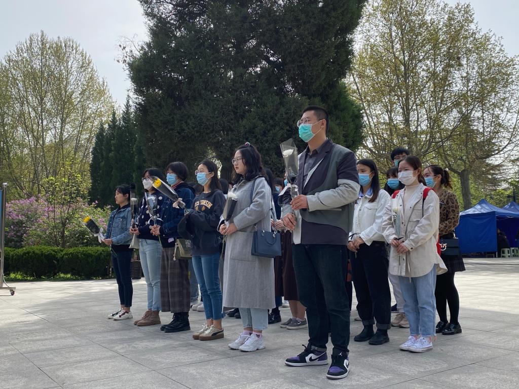 全体成员在烈士广场默哀三分钟,怀着无比崇敬的心情向烈士敬献鲜花,表达无尽的景仰和追思。