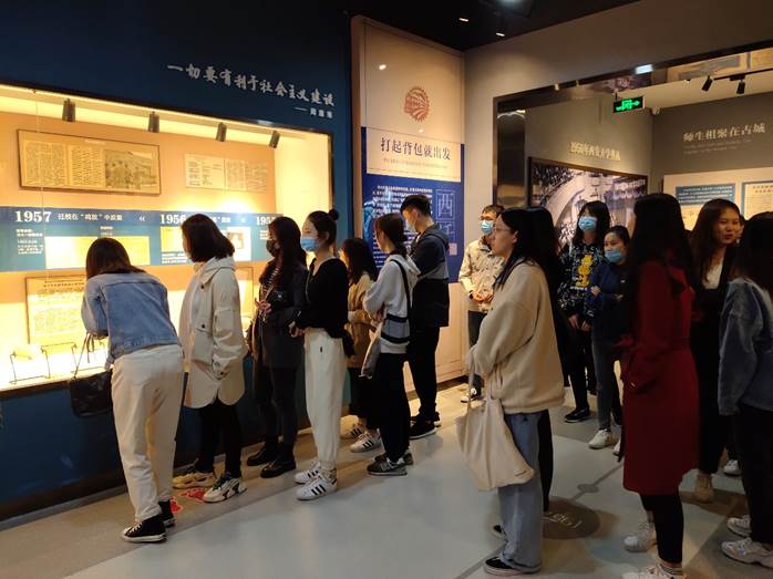 西迁部分呈现了1956年至2017年间波澜壮阔的交大西迁故事以及西迁后学校的发展情况。支援内地发展的实物和图文资料,担负使命的火车票、发旧泛黄的试卷、充满历史痕迹的证书都充分展现了交大前辈们胸怀大局、无私奉献的精神,都让同学们重温了那段可歌可泣的为中国经济发展、教育发展做出贡献的西迁历史。