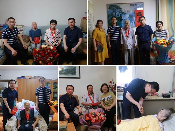 2021年中共中央首次颁发“光荣在党50年”纪念章,yl6809永利官网共有17名党员获得“光荣在党50年”纪念章。七一前夕,yl6809永利官网党委书记许佳辉、副书记王劲为不便参加集体颁发仪式的党员送去纪念章,对老党员表示慰问和感谢。