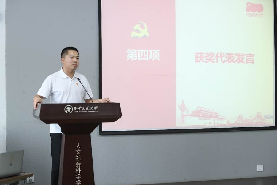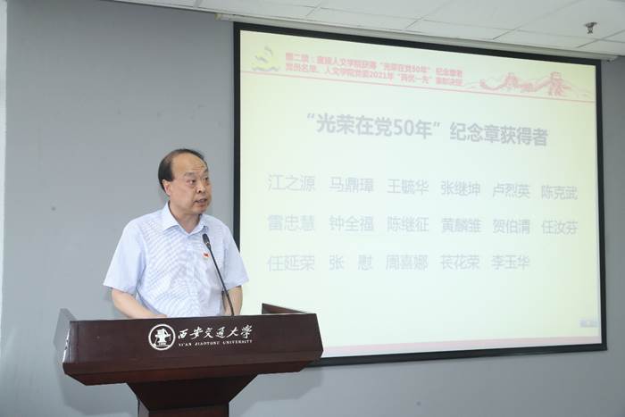 yl6809永利官网党委书记许佳辉首先带领大家学习了习近平总书记在庆祝中国共产党成立100周年大会上的重要讲话。他强调学院党委和各支部要把学习习近平总书记在庆祝中国共产党成立100周年上的重要精神作为当前首要的政治任务,将讲话精神作为推进高等教育高质量发展的根本遵循和行动指南,带领全院师生结合党史学习教育,牢牢把握正确的政治方向,坚持立德树人根本任务,落实“办好学科专业、推进人文与科技并重、助力人文交大”三大攻坚任务,凝聚奋进力量,为高质量教育体系建设贡献智慧和力量。他号召全体党员要向获得“光荣在党50年”纪念章的老同志和“两优一先”的集体和个人学习,在学院营造见贤思齐、创先争优的良好氛围,传承好学院发展的接力棒,建强党的基层组织,发挥党员先锋模范作用。