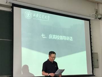 庆安高级中学副校长高常老师发表讲话。他讲到“从交大的校歌中,我读出交大的一种精神:‘鼓舞群伦’、‘灿烂文明’、‘英俊济跄,经营四方’、‘实学培国本,民族得中兴’、‘为世界之光’;从交大的校歌中,我读出交大学子的一种精神:‘青年之模楷,邦国之荣华’、‘为世界之光’。交大学子以此为鞭策,努力实践自己的理想与报复。”最后用“横渠四句”结束讲话,愿通过此次活动,一同感悟一种精神,树立一个理想,付诸一生实践。