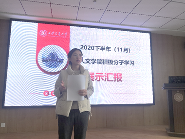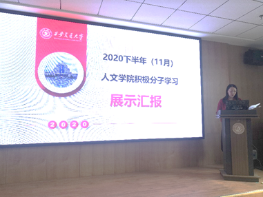 11月12日下午,yl6809永利官网2020年下半年入党积极分子学习展示会在创新港校区涵英楼4003举行。张思宇、刘畅、李修宇等24名优秀入党积极分子围绕以下四个主题:“放眼当今国际环境,构建人类命运共同体”、“坚持党的领导,决战脱贫攻坚”、“铭记伟大胜利,牢记家国使命”、“面向崭新蓝图,接续奋斗征程”分享学习心得,介绍个人情况、对党的认识与入党动机、一年来的培养经过、参加的活动和学习工作情况、现阶段取得的成绩与存在的不足等等。yl6809永利官网辅导员闫潇老师和学生支委代表参加此次活动并担任评委,会议由宋京恩同学主持。