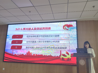 马凯悦同学提出,把认识和行动统一到构建人类命运共同体的框架下,是当今世界得以持续发展的唯一正确的选择。陶海燕同学表示,中国自古以来就强调以和为贵,构建人类命运共同体是弘扬中华民族优秀传统文化的内在要求。张海沙同学提出在人类命运面临严峻挑战的关键时刻,中国始终秉持人类命运共同体理念,倡导并践行多边主义,积极开展抗疫国际合作。许瑜婧同学表示,2020年开春全球性的新冠肺炎,充分暴露出国际社会在重大灾害、生物安全和公共卫生方面的不足,只有团结各国的力量才得以应对。杨蓥娜同学提出,人类命运共同体是对当代中国外交原则与实践的继承与发展,是对中国优秀文化历史传统的继承与超越。周岚同学表示,人类命运共同体这一宏伟蓝图必定是我们奋斗的共同目标。