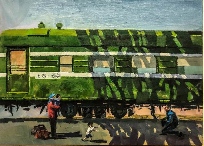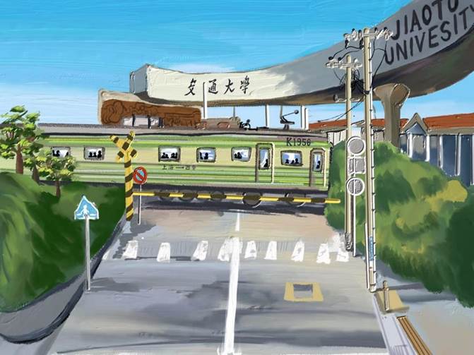 本幅作品描绘的是西迁列车抵达的场景,表达了对西迁前辈与“西迁精神”的感激与崇敬。上世纪五十年代,一大批交大人“打起背包就出发”,从上海迁至西安,为民族和国家的发展作出了巨大贡献,并孕育和形成了西迁精神。如今,在渭水之滨,沣河之畔,西迁精神仍在被传承、被发扬。西迁精神激励着我们前行,在奋斗中谱写出新的历史弦歌,在新征程上创造新的历史功绩。