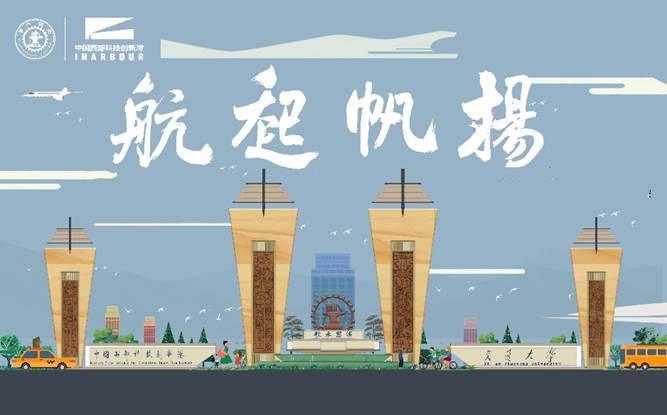 “扬帆起航”四个字分别代表了创新港南门的四个标志性建筑。 “起”字走之旁一点其势态昂扬,犹如扬起的风帆,生动地体现出“扬帆起航”的寓意。
